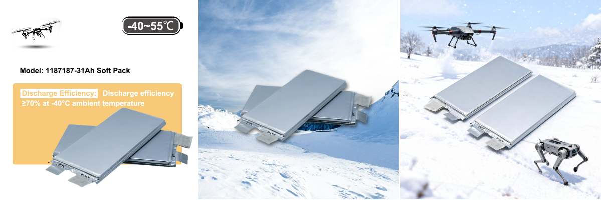 18650 21700 cylindrical ultra low temperature battery, 13Ah-115Ah Pouch Cells Li-ion polymer ultra low temperature battery for UAVs/Intelligent Robots/Mechanical Dogs/Single-Person Equipment Power Supplies and vehicle auxiliary cold start power supplies.